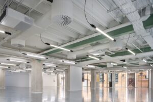 The project called for easy adaptability as the office is yet to be rented. The ideal solution was suspended lighting fittings that could be easily repositioned once the space is occupied.