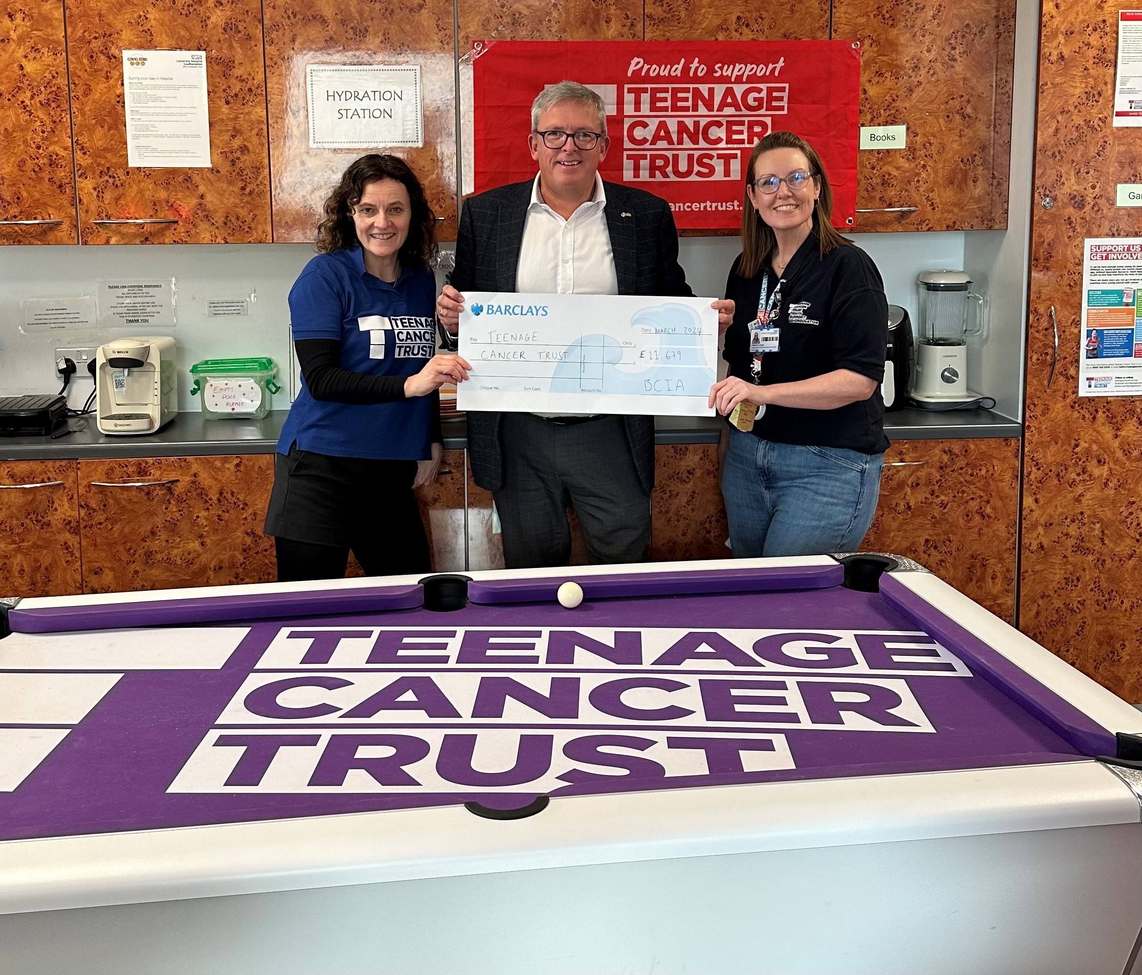 BCIA Immediate Past-President hands over charity cheque to Teenage Cancer Trust
